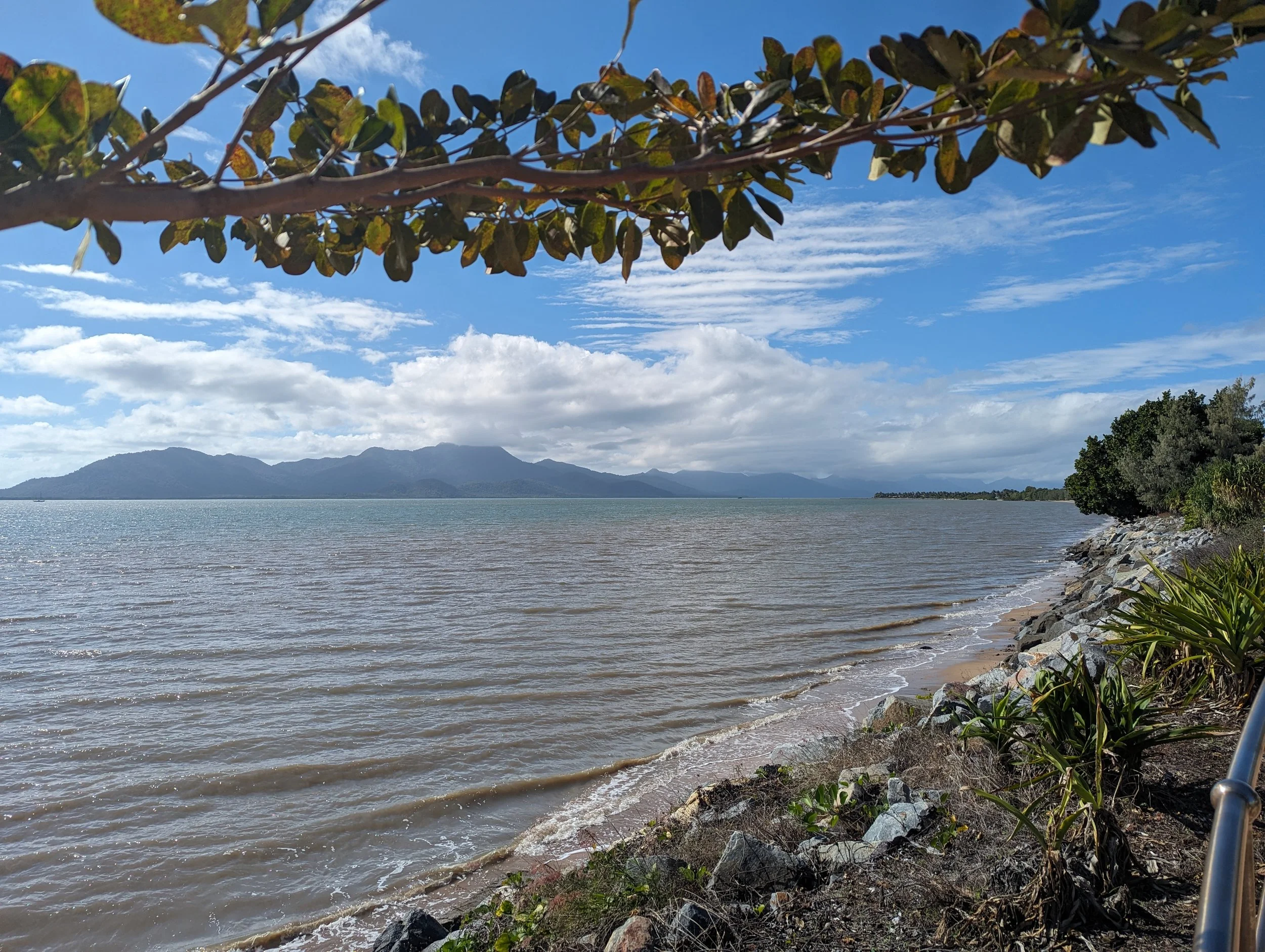 A four-hour bus ride south from Cairns brought me to Townsville, and a beautiful small ninth-floor AirBNB overlooking the ocean and set in an upscale waterfront district, North Ward. A mile-long deep green park extended back from the beach and its natural buffer, and included several zones of parks, memorials and play areas. The beach buffer itself was a linear outdoor sculpture exhibit, Seaside Ephemera (here) that was very diverting. Exploring other parts of the city revealed some interesting architecture and increased vacancies, adding up to much less of interest as the blocks got further from the water. The ferry terminal was within walking distance of my little suite, and it connected me to a day on Magnetic Island, with easy local bus connections, hiking forests, WWII ruins and Horseshoe Bay, a small, secluded town with a long, sweeping white sand beach, absolutely perfect for a getaway week of solitude someday.